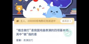 唱念做打是我国戏曲表演的四项基本功其中做指的是?2021年3月27日蚂蚁庄园今日答案最新是什么?相信不少朋友都还不知道今天支付宝小鸡庄园答案是什么,今天993937手游网小编为大......