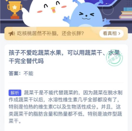 孩子不爱吃蔬菜水果可以用蔬菜干水果干完全替代吗 2021年3月7日今日蚂蚁庄园答案