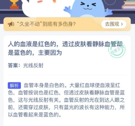 人的血液是红色的透过皮肤看静脉血管却是蓝色的主要因为 2021年3月3日今日蚂蚁庄园答案