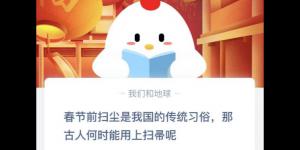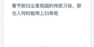 春节前扫尘是我国的传统习俗,那古人何时能用上扫帚呢 2021年2月5日今日蚂蚁庄园答案
