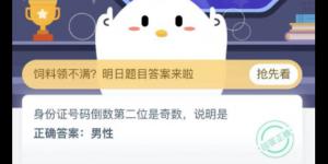 身份证号码倒数第二位是奇数,说明是?今天2021年2月2日蚂蚁庄园今天的答案是什么?不少朋友都还不知道今日小鸡课堂答案是什么,今天993937手游网小编为大家分享支付宝蚂蚁庄园今......