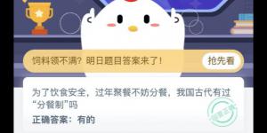 为了饮食安全过年聚餐不妨分餐,我国古代有过“分餐制"吗 2021年2月1日今日蚂蚁庄园答案