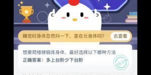 想要爬楼梯锻炼身体最好选择以下哪种方法?今天2021年1月31日蚂蚁庄园今天的答案是什么?不少朋友都还不知道今日小鸡课堂答案是什么,今天993937手游网小编为大家分享支付宝蚂蚁......