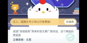 成语洛阳纸贵用来形容文章广受欢迎,这个典故的原型是?今天2020年12月29日蚂蚁庄园今天的答案是什么?不少朋友都还不知道今日小鸡课堂答案是什么,今天993937手游网小编为大家分享......