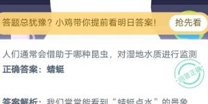 人们通常会借助于哪种昆虫,对湿地水质进行监测?2020年10月13日今天蚂蚁庄园答案是什么