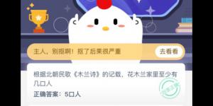花木兰家里几口人?支付宝小鸡庄园答案10月14日