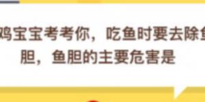 吃鱼时要去除鱼胆,鱼胆的主要危害是?2020年10月3日今天蚂蚁庄园答案是什么