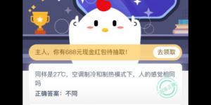 同样是27deg;C,空调制冷和制热模式下,人的感觉相同吗?今天支付宝小鸡庄园2020年9月25日答案是什么?相信不少朋友都还不知道今天支付宝小鸡庄园答案是什么,今天993937手游网小编......