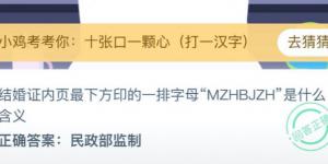 结婚证内页最下方印的一排字母MZHBJZH是什么含义?今天支付宝小鸡庄园2020年8月21日答案是什么?相信不少朋友都还不知道今天支付宝小鸡庄园答案是什么,今天993937手游网小编为大......