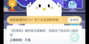 百家姓里的姓氏越靠前,说明这个姓氏的人越多吗 支付宝小鸡庄园答案8月23日