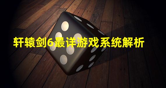 轩辕剑6游戏系统解析深入剖析游戏玩法,带你领略全新世界