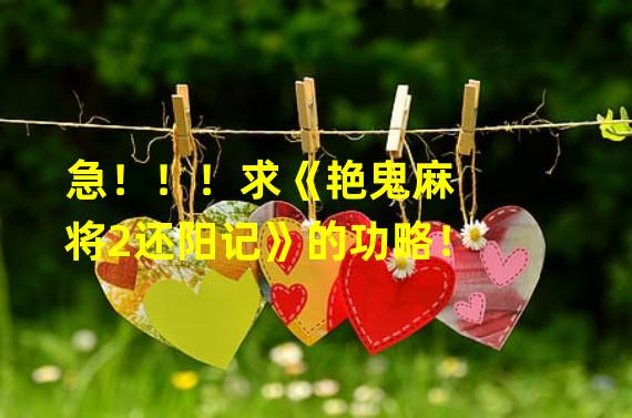 急!!!求《艳鬼麻将2还阳记》的功略!!求《艳鬼麻将2还阳记》的功略!希望对玩家朋友们有帮助