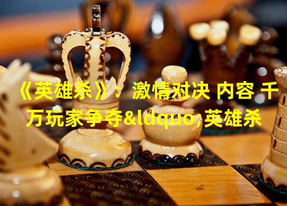 《英雄杀》:激情对决 内容 千万玩家争夺“英雄杀cdkey”