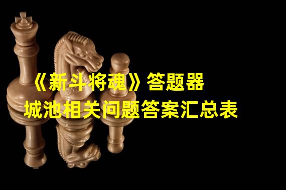 《新斗将魂》答题器 城池相关问题答案汇总表