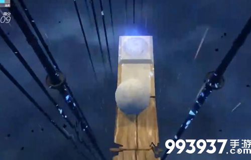 然后往右走,因为这里有两个分数,通过冰球的粘性吃到,有一定的风险,操作难度比较高,新手可选择不吃。