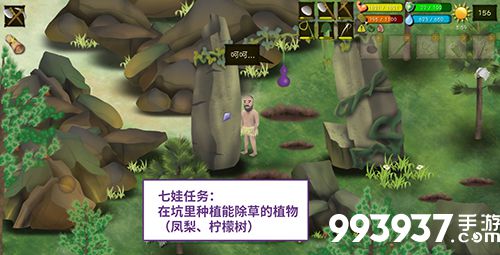 七娃任务:把【水晶】放上去并种植能除虫的植物,比如柠檬、凤梨,香蕉给七娃除虫一次即可。