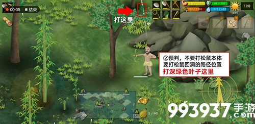 ②预判,不要打松鼠本体,要打松鼠回洞的路径位置