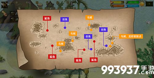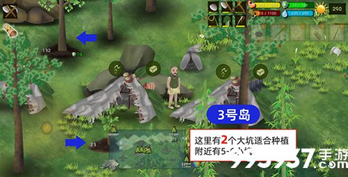 ②收集1号出生地岛上的所有材料以后,吃饱后去右下角的2号主岛建营地,(为什么我让大家去2号岛而不是3号呢,因为2号岛有2个非常接近的鳄鱼刷新点适合安家和很多大小坑位适合种植和捕猎)。