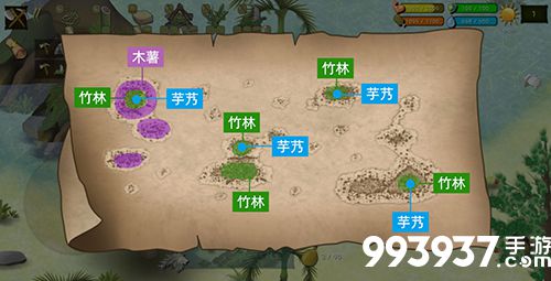 ①前期营地可以建在1号岛出生地,出生地的竹子是有限的,先做【套索工具】,然后在一个做营地,一个做船,剩下的竹子制作竹叉。