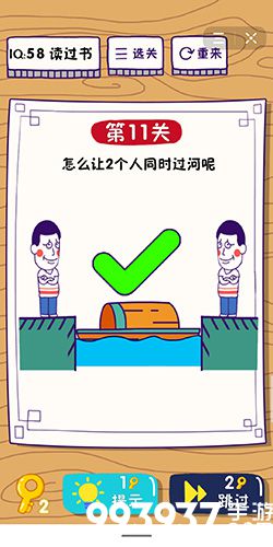 在第11关中,两个人都想过河,且要同时过河,但是船太小承载不起两个人的重量,这该怎么办呢?下面小编就给玩家带来这题太难了第11关怎么过的攻略,一起去看看吧!