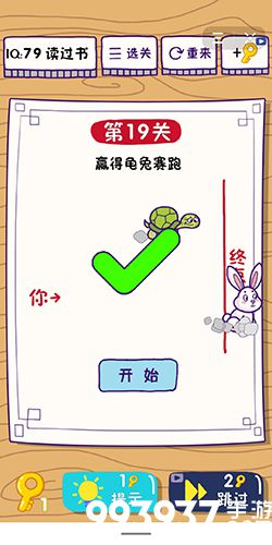 在第19关中,乌龟与兔子又开始进行赛跑,而你需要赢得比赛。下面小编就给玩家带来这题太难了第19关怎么过的攻略,一起去看看吧!