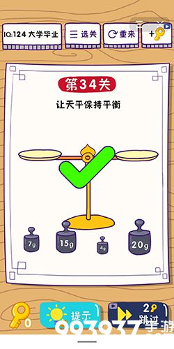 在第34关中,你需要让天平保持平衡,但是到底该怎么做呢?下面小编就给玩家带来这题太难了第34关怎么过的攻略,一起去看看吧!