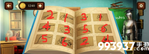 1、点击场景中右侧桌上打开的书,根据图片对应关系依次点击图片,如下图。