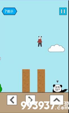 上去后跳到云朵上,又会碰到两个柱子,中间位置不能落下,也有地刺哦,跳过去就能通关了。