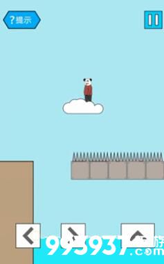 首先我们跳到云朵上,问号方块不要碰上面有刺,跳过后往前走。