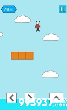 开局先跳云朵,然后落到三格橙色方块上,之后往前走。