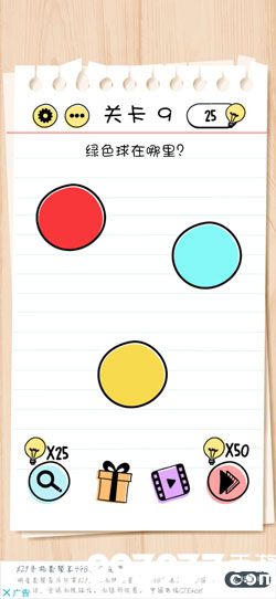 在第9关中,你需要找到绿色球在哪里,但是你只看到红色、黄色以及蓝色的球。下面小编就给玩家带来Brain Test第9关怎么过的攻略,一起去看看吧!