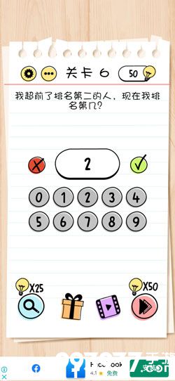 在第6关中,我超前了排名第二的人,现在我排名第几,很多玩家会被误导。下面小编就给玩家带来Brain Test第6关怎么过的攻略,一起去看看吧!