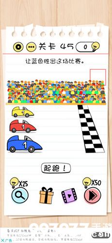 在第45关中,你需要让蓝色胜出这场比赛,但是比赛公平公开公正,如何才能进行作弊呢?下面小编就给玩家带来Brain Test第45关怎么过的攻略,一起去看看吧!