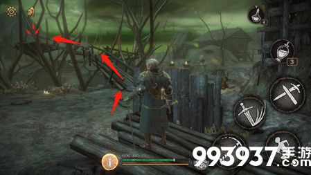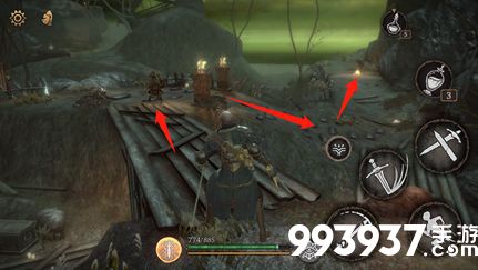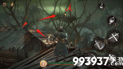 一、从第一个祭坛出发,经过黑精商人后来到屋顶的岔路口位置。