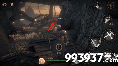 十一、出洞口后,爬上***,来到一岔路,往右侧前进,进入地牢。
