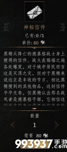附:下楼梯后,左侧楼梯可使黑精商人连开两门,跑到2个修女的铁门后,他会在那。出售的任务道具【神秘信件】可使火猪旁的门洞NPC让路。