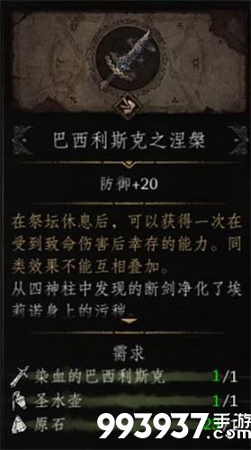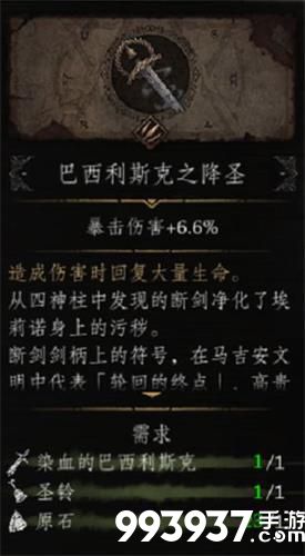 用真圣剑进行修女埃莉诺剧情,获得【染血的巴西利斯克】和【染血的遗书】。