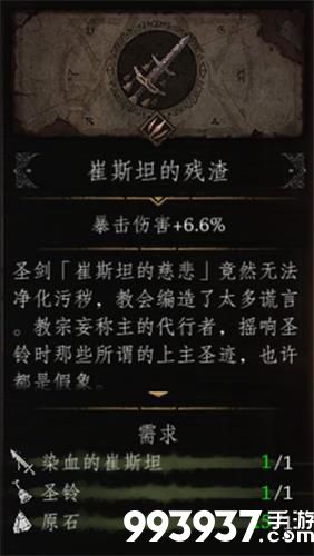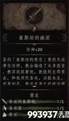 如果选择使用【崔斯特的慈悲】,会发现感染了污秽的修女并未被杀死,而转化为小怪,击杀后仍会掉落【染血的遗书】。背包中出现【染血的崔斯坦】。