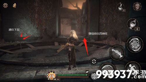 四、让我们再次回到自裁修女的大厅,继续向前出发,在骑士与小丑缠斗的地方,左拐,即可看到第三个四神柱。