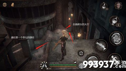 三、继续从神柱门口的方向前进,在图二左侧可开启捷径,直走到底右拐则会碰到想要用圣剑自裁的修女。触发[轶闻]支线任务【死亡,或者成为污秽】。