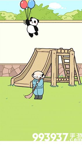 滑梯处获得蓝色气球给饲养员吹气,最右左边的轮胎获得小熊猫,跟左边的小熊猫叠叠乐获得气球,最后把气球给滑梯上的小熊猫。