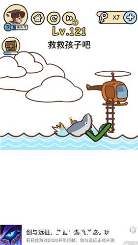 脑洞大大大中第121关中孩子掉进水里了,还将要被鲨鱼给吃了,玩家要想办法救救孩子,将孩子给救上来?下面小编就给玩家带来脑洞大大大第121关怎么过的内容,一起去看看吧!......