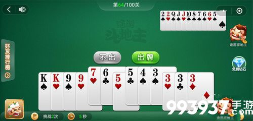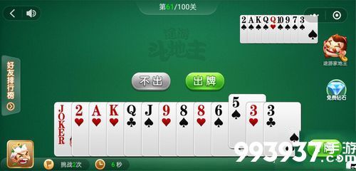 微信途游斗地主残局第63关可以先把小对子给出了,反正对面都吃不起,我们的散牌也不小,所以还是非常简单过关的,来随小编看看出牌顺序吧。...